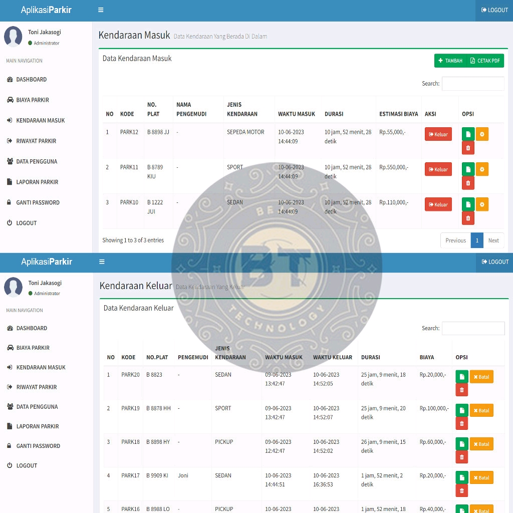 Aplikasi manajemen parkir kendaraan menggunakan teknologi berbasis web